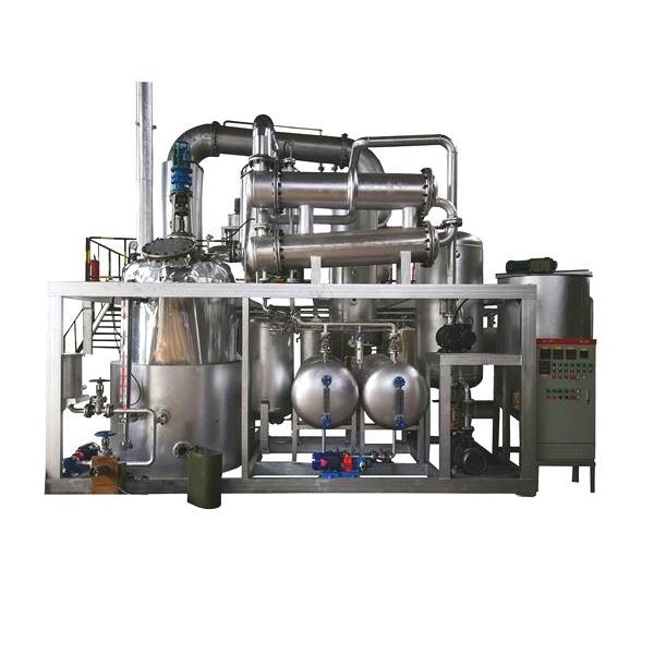 廢輪胎油煉油設(shè)備適用于輪胎裂解毛油、塑料裂解毛油的精餾提純,該工藝在高真空環(huán)境中對裂解后的輪胎油、塑料油進(jìn)行減壓精餾產(chǎn)出高品質(zhì)燃料油,從而提高裂解油的市場用途。