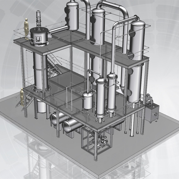 1、預(yù)處理系統(tǒng):廢機(jī)油經(jīng)過預(yù)處理系統(tǒng)處理后,泵入蒸餾釜內(nèi)。