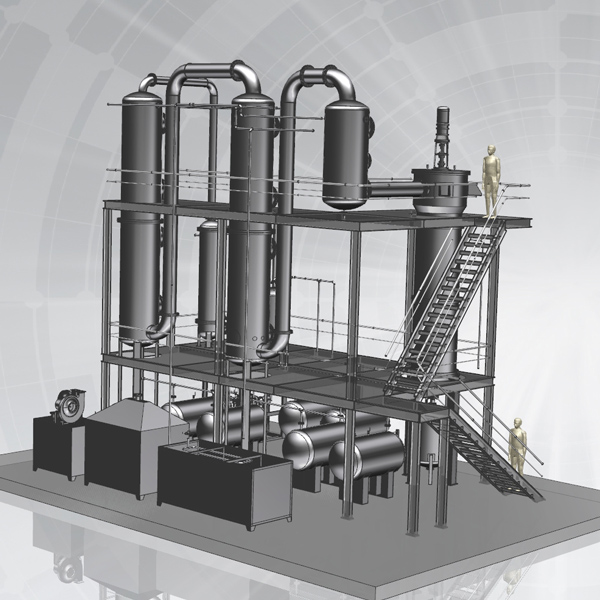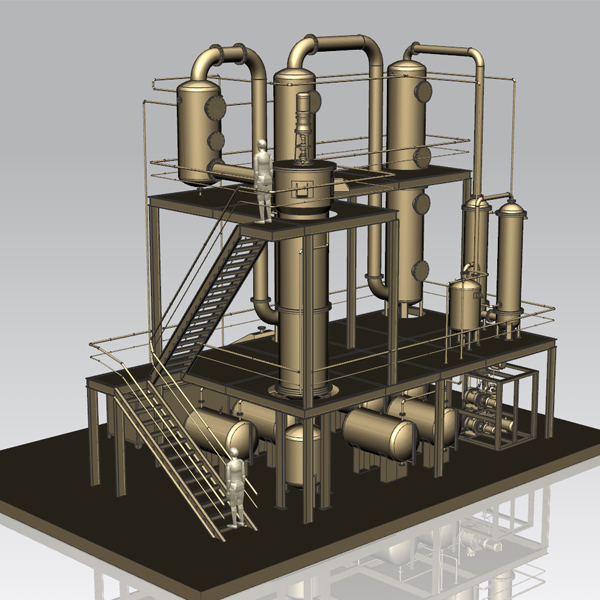 2、蒸餾系統(tǒng):通過燒燃料油、燃?xì)獾热剂蠈⒏獌?nèi)廢機(jī)油在真空狀態(tài)加熱至工作溫度,同時(shí)釜內(nèi)配有攪拌系統(tǒng)和保溫系統(tǒng)。