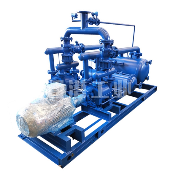 化工真空機(jī)組在一般情況下,選用水環(huán)泵作為前級泵比其它真空泵更為有利,這主要是由于它能夠抽除大量的可凝性蒸汽,特別是當(dāng)氣鎮(zhèn)油封機(jī)械真空泵排除可凝性蒸汽能力不夠,或使用的溶劑能使泵油惡化而影響性能,或者是真空系統(tǒng)不允許油污染的時候更為明顯。